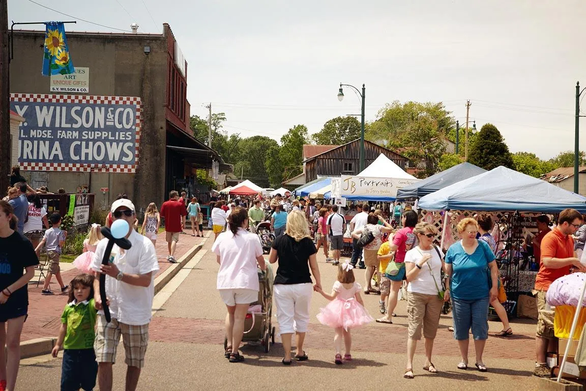 An annual spring street fair featuring arts, crafts, food, live music, a DJ, children’s market, and historic Depot Square landmarks like the blacksmith, log cabin, and museum.